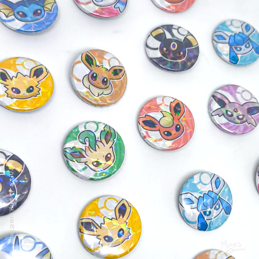 ✔️ Quantidade: 9 bottons (Eevee + Evoluções)